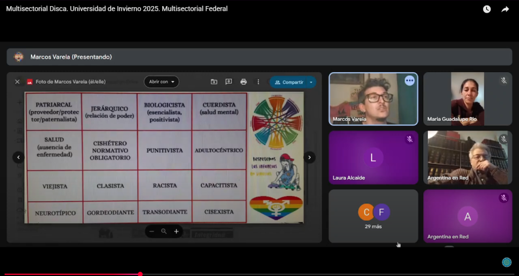 El equipo del Gabinete de Discapacidad, a través de la Universidad Popular de Invierno 2025 organizada por la Multisectorial Federal de la República Argentina, realizó el viernes 29 de agosto el Panel de Discapacidad titulado: “La heteronorma mata. Visibilización de violencias naturalizadas a exterminar, y propuestas de accesibilidad“, con panelistas que son referencia a nivel nacional e internacional, y del que a continuación presentaremos la transcripción y los consensos a los que se arribó.
