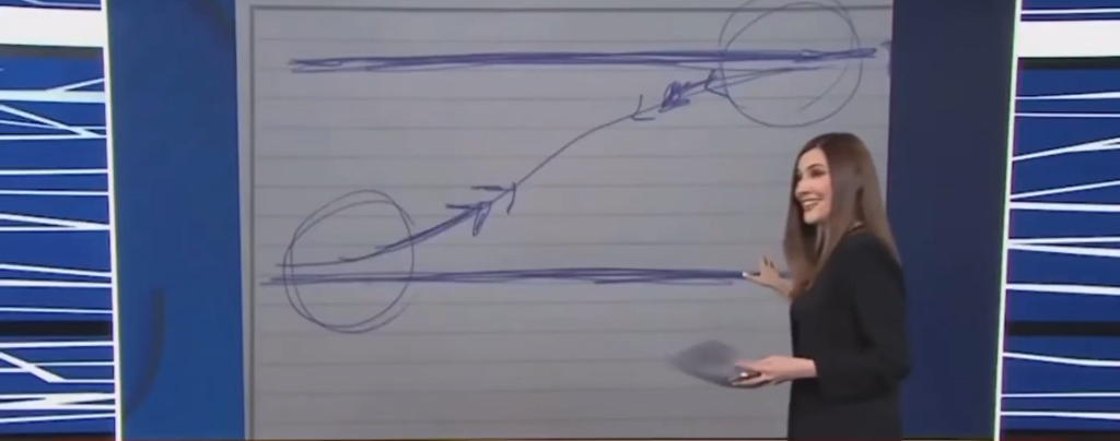 Periodista argentina muestra el “dibujito” que hizo el presidente Javier Milei para explicar la banda de flotación del dólar en la economía argentina y la presión de los mercados